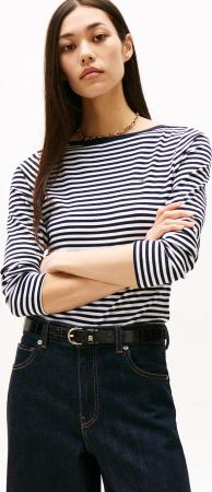 Damen Langarmshirt Slim Fit Cody mit U-Boot-Ausschnitt, Mehrfarbig (Breton Dark Night Navy STP), 48
