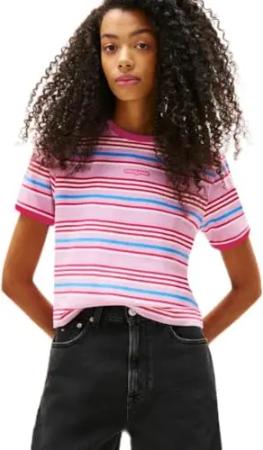 Damen T-Shirt Dw0dw21391 Carnival Pink - Stripe M