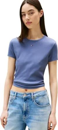 Damen T-Shirt Kurzarm Essential Rib Slim Fit, Blau (Colorado Blue), XL