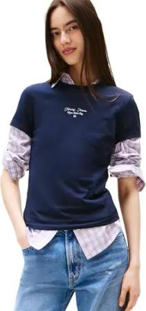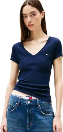 Tommy Hilfiger Damen-T-Shirt, Marineblau, Slim Linear DW0DW21164, marine, M