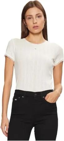 Damen Tjw Slim Essential Rib Ext Dw0dw17383 Langarmhemd, Weiß, XXS EU