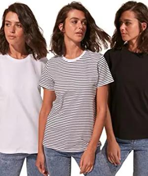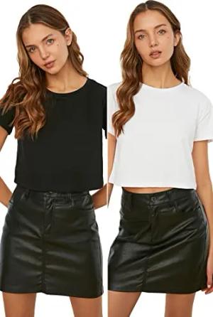Damen Black And White 100% Cotton Bicycle Collar 2 Package Crop Knitted T-shirt T Shirt, Black And White, XL EU