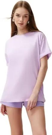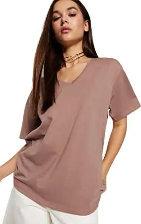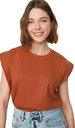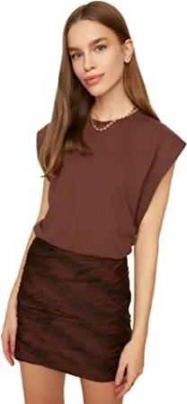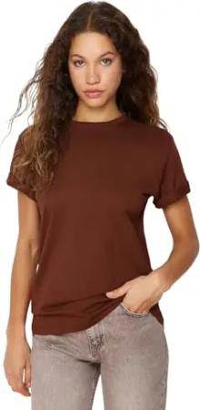 Damen Trendyol Damen Regular Standard Rundhals Gewebtes T-shirt Hemd, Braun, M EU