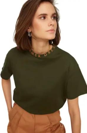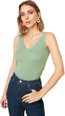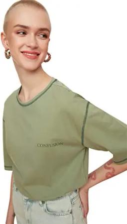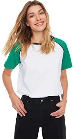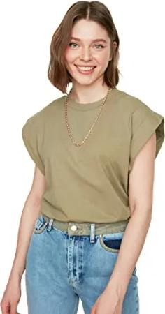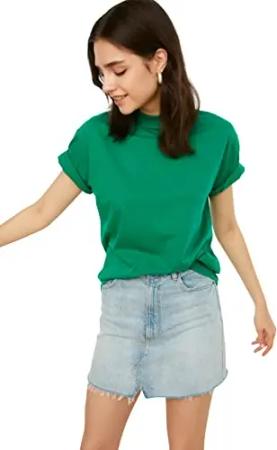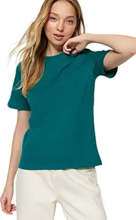 Damen Trendyol Damen Regular Standard Rundhals Knit T-shirt Hemd, Grün, S EU