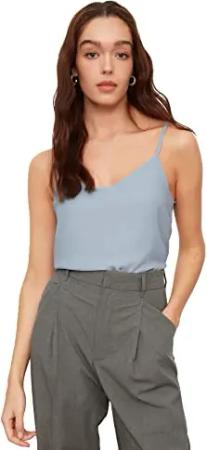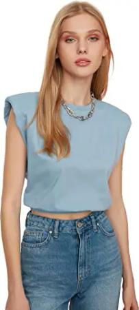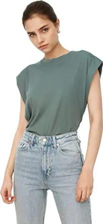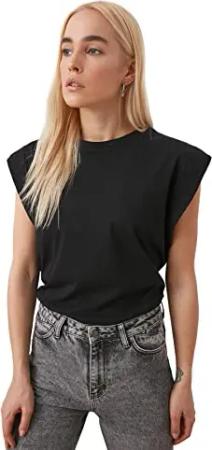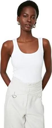 Damen Trendyol T-shirt mit Sleeveless Basic T-Shirt Westlich, Weiß, L