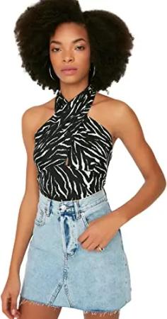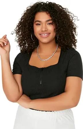 Damen Trendyol Women's Plus Size Standard Choker High Neck Woven Plus Size T-shirt Hemd, Schwarz, XXL EU