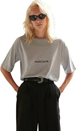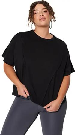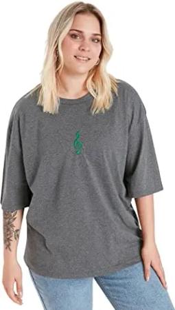 Damen Trendyol Damen-t-shirt, Übergröße, Standard-rundhalsausschnitt, Übergröße Hemd Lässig, Anthrazit, 3XL
