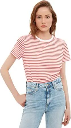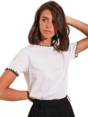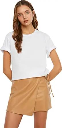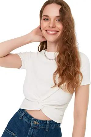 Damen Trendyol 100% baumwolle fahrrad kragen freund gestrickt t-shirt T-Shirt, Weiß, XS