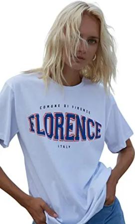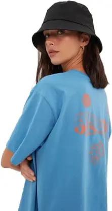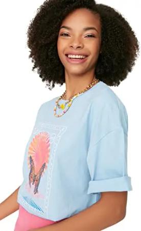 Damen hellblau 100% Baumwolldruck, entspannte/breite, bequem geschnittene Crewneck-Strick-T-Shirt T-Shirt 22TS1145, hellblau s