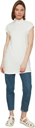 Damen Trendyol steile Kragen grundlegend gestricktes T-Shirt T-Shirt, White, XL