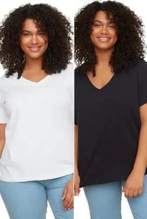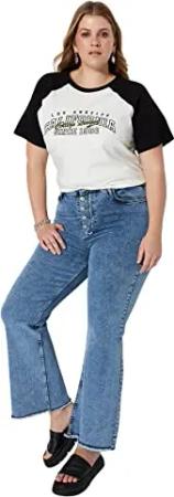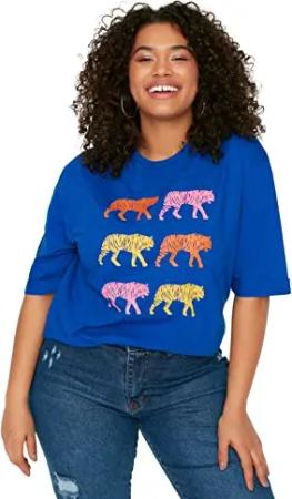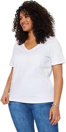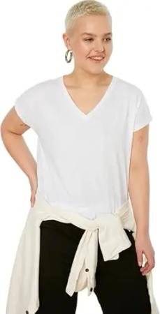 Damen Trendyol Damen T-shirt mit V-ausschnitt, Normale Passform, Übergröße Hemd Lässig, Merhfarbig, 3XL Große Größen
