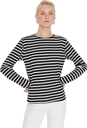Damen Gestreiftes Basic Gestricktes T-shirt T Shirt, Schwarz, XS EU