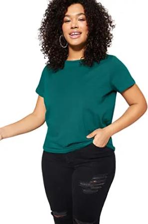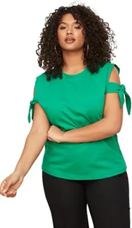 Damen Trendyol Damen Regular Standard Rundhals Knit Plus Size T-shirt Lässig Hemd, Smaragdgrün, XXL Große Größen
