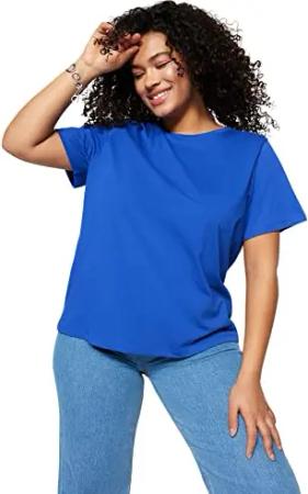Damen T-Shirt mit Rundhalsausschnitt, Normale Passform, Übergröße Hemd, blau, XXXXL