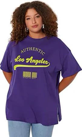 Damen TBBSS23AH00131 T-Shirt in Übergröße, Violett, 4XL