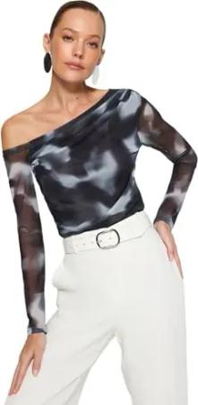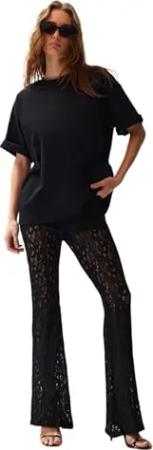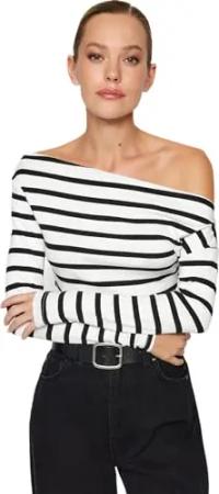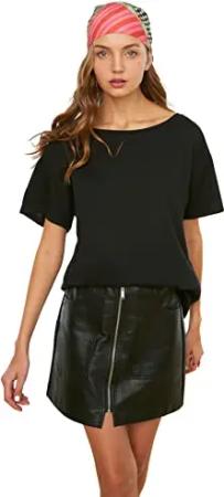 Damen Trendyol Damen Basics Boyfriend Basic Asymmetrischer Kragen Knit T-shirt T-Shirt Lässig, Schwarz, S