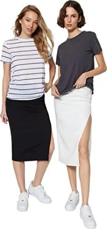 Damen Trendyol Women's Basic Slim Standard Crew Neck Woven T-shirt Hemd, Anthracite/Multi-color, M EU