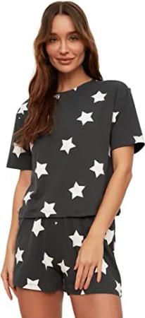 Damen Women Geometric Pattern Middle Knit T-Shirt-Short Pajama Set Pyjama, Very Colorful, L (2er Pack)