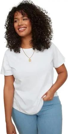 Damen Women Plus Size Regular fit Basic Crew Neck Knit Plus Size T-Shirt Damen Plus Size Regular Fit Basic Strick-T-Shirt mit Rundhalsausschnitt in Übergröße, White,