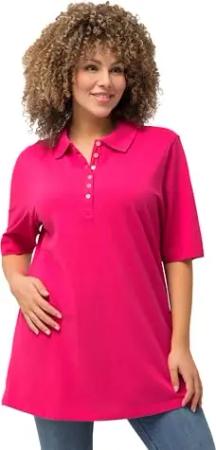 Damen große Größen Poloshirt, T-Shirt mit Samtband-Knopfleiste, Basic-Shirt, Polokragen, Baumwolle magentapink 54+ 637297528-54+