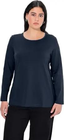 Damen große Größen Übergrößen Plus Size bis 64, Oberteil, Langarmshirt, Basic, Langarm, Rundhalsausschnitt, Marine 58+ 646801755-58+