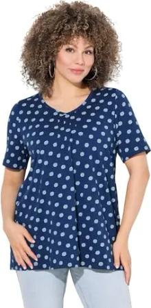 Damen große Größen Übergrößen Plus Size Longshirt, Gemustert, A-Linie, V-Ausschnitt, Halbarm Marine 66+ 839698130-66+