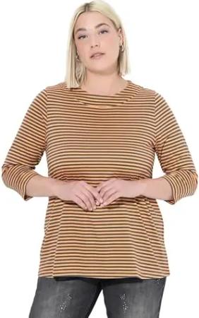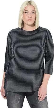 Damen große Größen Übergrößen Plus Size Langarm Shirt gestreift mit Stehkragen