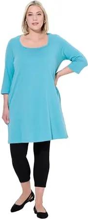 Damen große Größen Übergrößen Plus Size Longshirt, A-Linie, Carré-Ausschnitt, 3/4-Arm türkisgrün 42+ 825970725-42+