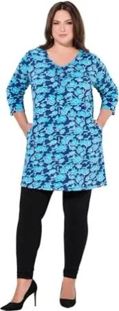 Damen große Größen Übergrößen Plus Size Longshirt, A-Linie, V-Ausschnitt, 3/4-Arm Salsa 54+ 825989530-54+