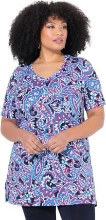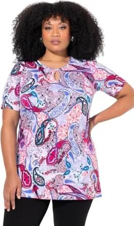 Damen große Größen Übergrößen Plus Size Longshirt, Paisley, A-Linie, Rundhals, Halbarm Mittelblau 66+ 838171759-66+