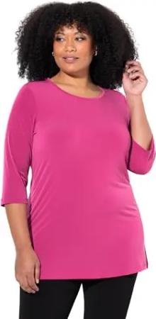 Damen große Größen Übergrößen Plus Size Longshirt, Rundhalsausschnitt, 3/4-Arm pink 50+ 812148520-50+