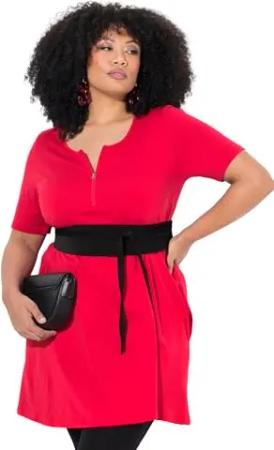 Damen große Größen Übergrößen Plus Size Longshirt, Zipper, A-Linie, Rundhals, Halbarm Lychee 58+ 829527530-58+