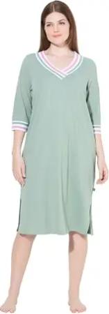 Damen große Größen Übergrößen Plus Size Nachthemd, Streifenkanten, 3/4-Arm