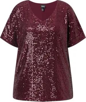 Damen große Größen Übergrößen Plus Size Pailletten-Shirt, Oversized, V-Ausschnitt, Halbarm
