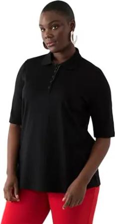 Damen große Größen Übergrößen Plus Size Poloshirt, Classic, Polokragen, Halbarm, Pima Cotton schwarz 58+ 820757130-58+