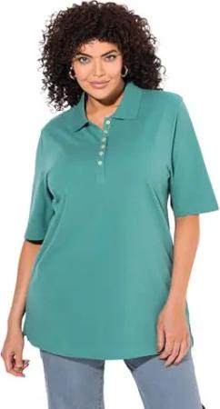 Damen große Größen Übergrößen Plus Size Poloshirt, Piqué, Polokragen, Samt-Knopfleiste, Halbarm