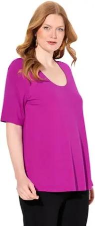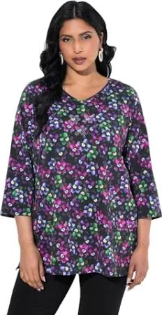 Damen große Größen Übergrößen Plus Size T-Shirt, A-Linie, V-Ausschnitt, Zierfalten, 3/4-Arm Amethyst 46+ 830713800-46+