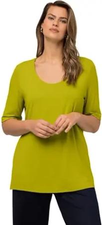 Damen große Größen Übergrößen Plus Size Shirt, doppellagige Vorderseite, Slim, Rundhals, Halbarm limettengrün 50+ 810528403-50+