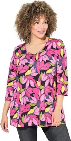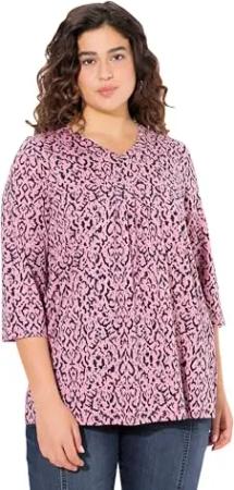 Damen große Größen Übergrößen Plus Size Shirt, Blätter, A-Linie, V-Ausschnitt, 3/4-Arm pink 46+ 820011802-46+