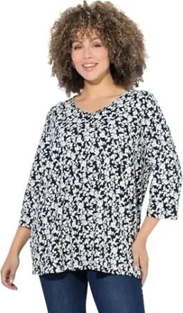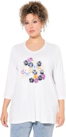 Damen große Größen Übergrößen Plus Size Shirt, Blüten, A-Linie, Tunika-Ausschnitt, 3/4-Arm schneeweiß 50+ 835207200-50+