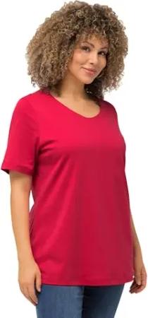Damen große Größen Übergrößen bis 72, Basic T-Shirt, Oberteil, Regular Fit, Rundhalsausschnitt, Halbarm, Beere 50+ 486910827-50+