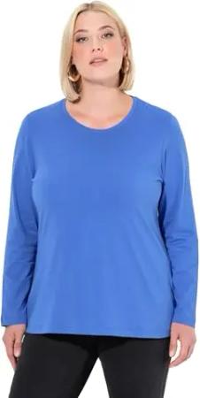 Damen große Größen Übergrößen bis 64, Oberteil, Langarmshirt, Basic, Langarm, Rundhalsausschnitt, helle Kornblume 50+ 646801729-50+
