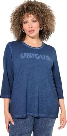 Damen große Größen Übergrößen Plus Size Shirt, Statementstickerei, Classic, Rundhals, 3/4-Arm