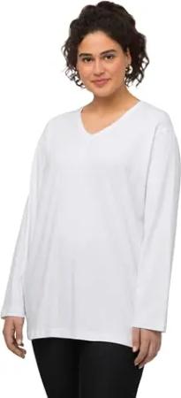 Damen große Größen Übergrößen Plus Size Shirt, V-Ausschnitt, Relaxed, Langarm schneeweiß 42+ 725334200-42+