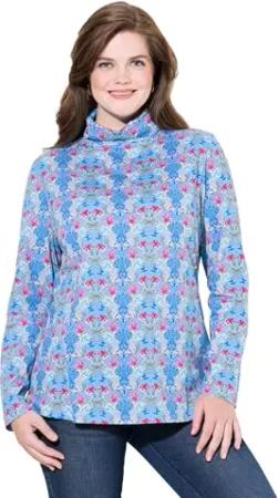 Damen große Größen Übergrößen Plus Size Shirtrolli, floraler Druck, Rollkragen, Langarm graublau 42+ 834489740-42+