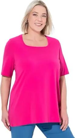 Damen große Größen Übergrößen Plus Size T-Shirt, A-Linie, Carré-Ausschnitt, Halbarm magentapink 54+ 807286528-54+