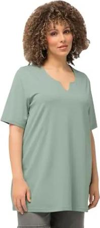 Damen große Größen Übergrößen Plus Size T-Shirt, A-Linie, Tunika-Ausschnitt, Halbarm helles moosgrün 46+ 807259182-46+