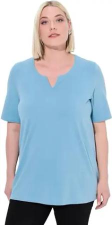 Damen große Größen Übergrößen Plus Size Shirt, doppellagige Vorderseite, Slim, Rundhals, Halbarm Blauer Flieder 62+ 810528810-62+