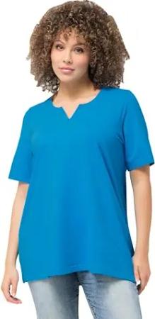 Damen große Größen Übergrößen Plus Size T-Shirt, A-Linie, Tunika-Ausschnitt, Halbarm saphirblau 46+ 807259750-46+