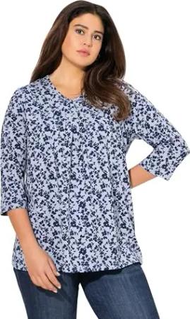 Damen große Größen Übergrößen Plus Size T-Shirt, A-Linie, V-Ausschnitt, Zierfalten, 3/4-Arm